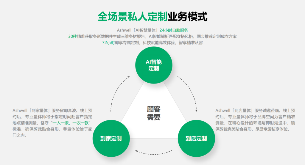 對雅思唯爾而言,AI 定制機(jī)的價(jià)值遠(yuǎn)不止量體 —— 它以技術(shù)打通了?“量體 – 設(shè)計(jì) – 生產(chǎn)” 全鏈路,將“為你定制當(dāng)然更好”的理念轉(zhuǎn)化為每位用戶可切身感知的體驗(yàn)。